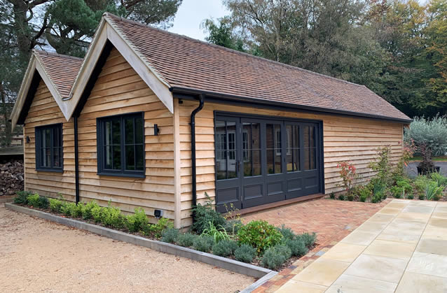 Timber framed garages, outbuildings, home offices, pool houses and outdoor kitchens.