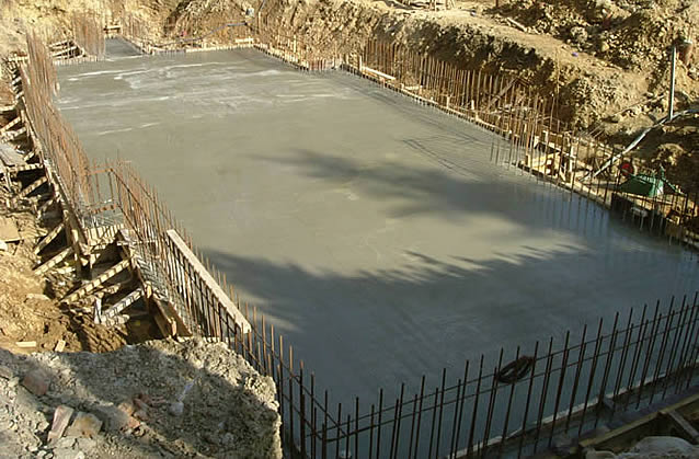 conditions on a hillside. The basement is formed using a re-enforced